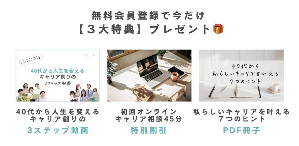 40代から人生を変える3大特典が受け取れます。